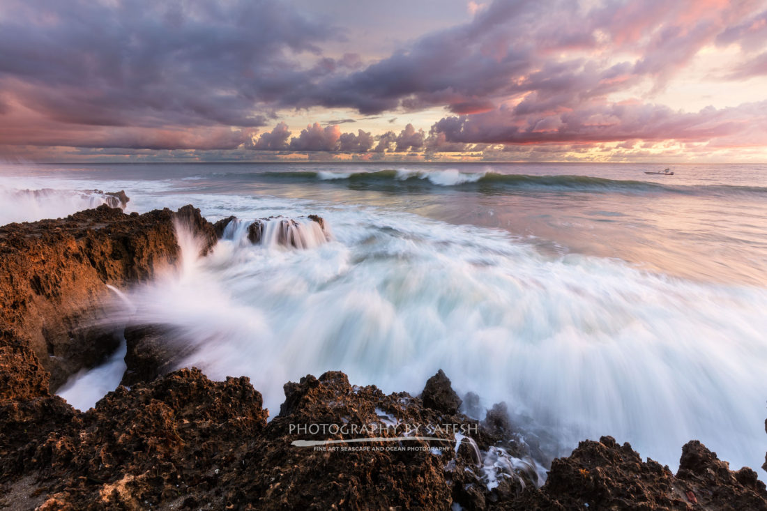 HomeGalleriesFlorida Landscape PhotographySunrise Splash Sunrise Splash Big waves crash along the rocky shores of the House of Refuge Gilbert’s Bar, Stuart, Florida at sunrise. Limited Edition prints available for purchase below. Florida Landscape Photography SharePinPostShareEmail